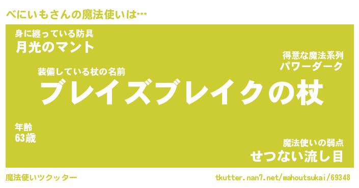 | ファンタジー風あだ名 | 『ベニフェル』『エターナルベニイモー』 |