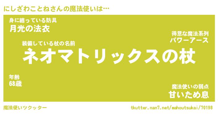 | 伝説のあだ名 | 『不死鳥の竜騎士にしざわことね』 |