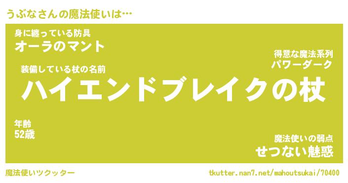 | ファンタジー風あだ名 | 『ウブフェル』『エターナルウブナー』 |