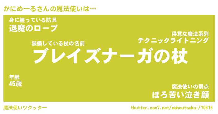 | ファンタジー風あだ名 | 『カニフェル』『エターナルカニメールー』 |