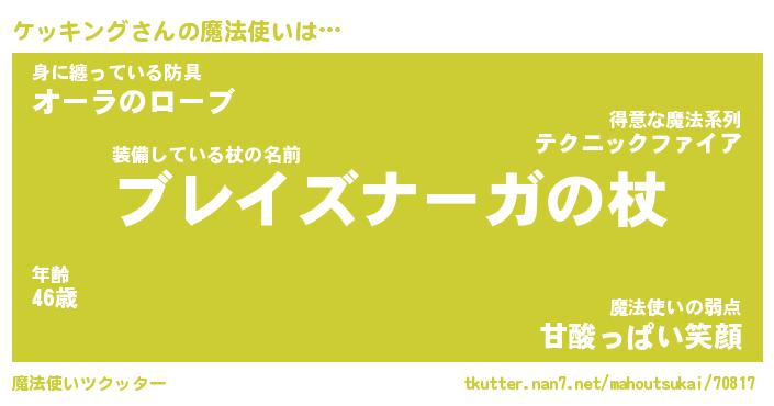 | 男性向けラノベタイトル風あだ名 | 『ケッキングの憂鬱』 |