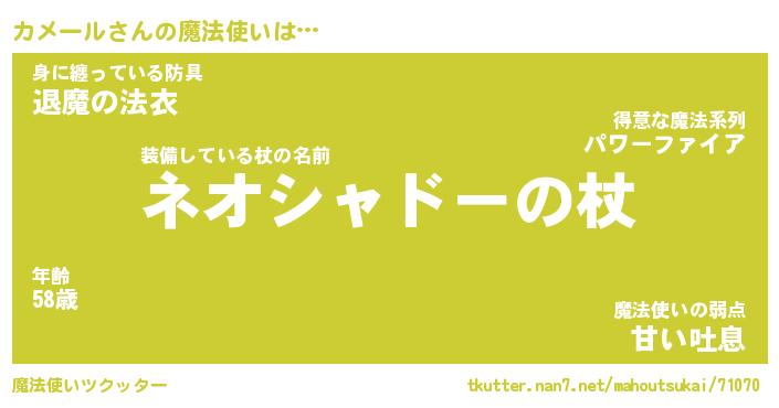 | ファンタジー風あだ名 | 『カメフェル』『エターナルカメールー』 |
