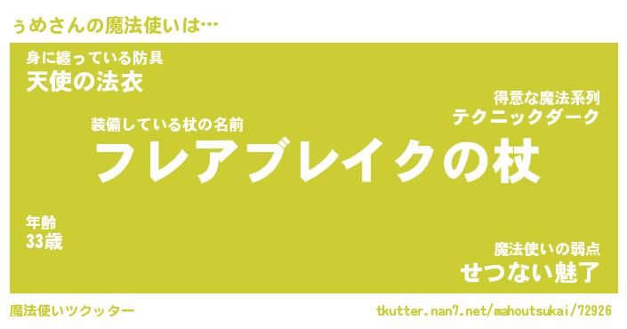 | ファンタジー風あだ名 | 『ゥメフェル』『エターナルゥメー』 |