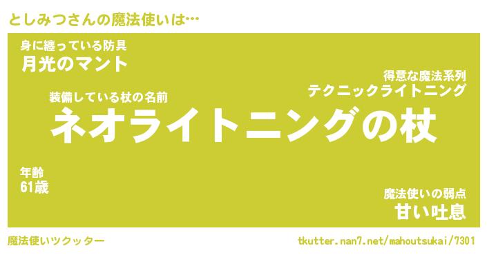 | ファンタジー風あだ名 | 『トシフェル』『エターナルトシミツー』 |
