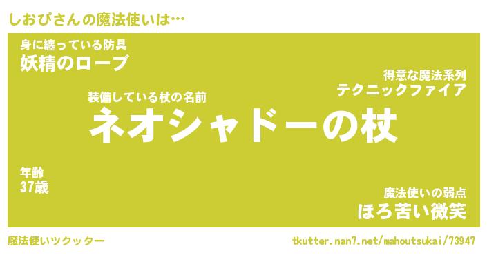 | ファンタジー風あだ名 | 『シオフェル』『エターナルシオピー』 |