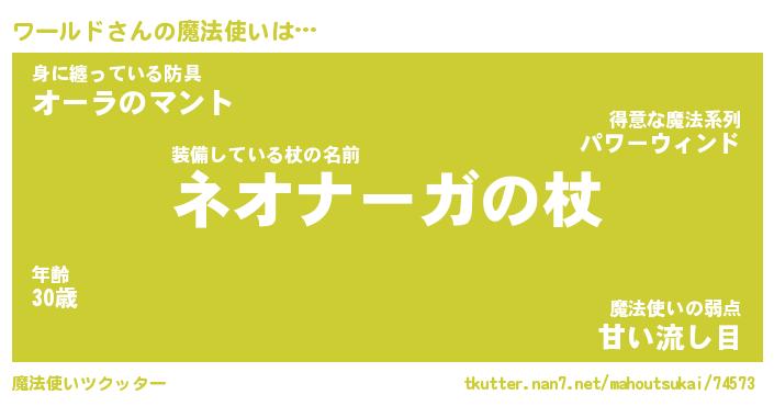 | 男性向けラノベタイトル風あだ名 | 『ワールドの憂鬱』 |