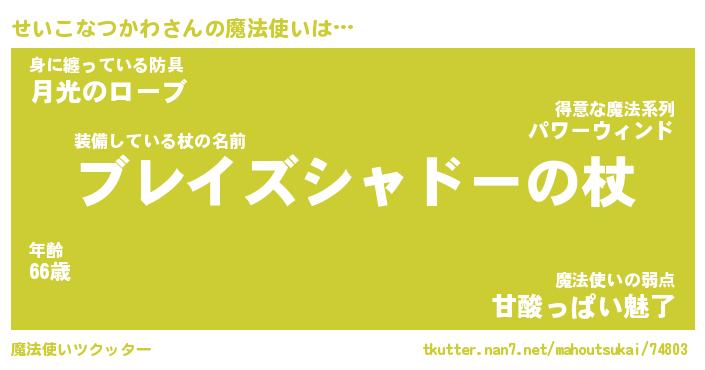 | 男性向けラノベタイトル風あだ名 | 『せいこなつかわの憂鬱』 |