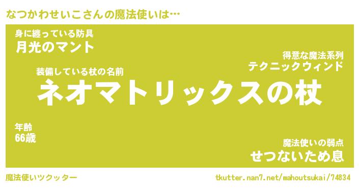 | 男性向けラノベタイトル風あだ名 | 『なつかわせいこの憂鬱』 |