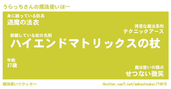 | ファンタジー風あだ名 | 『ウラフェル』『エターナルウラッチー』 |