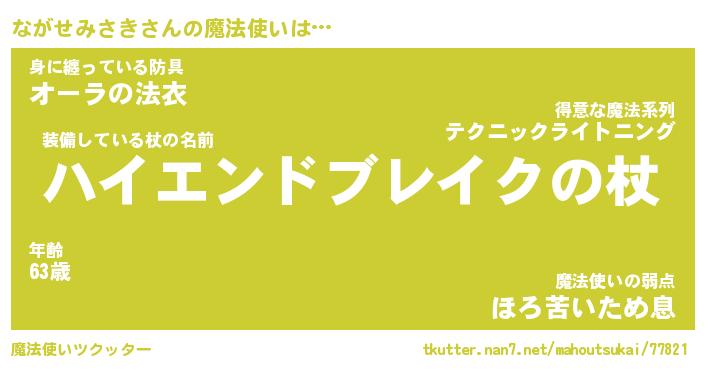 | 伝説のあだ名 | 『封印されし傭兵ながせみさき』 |