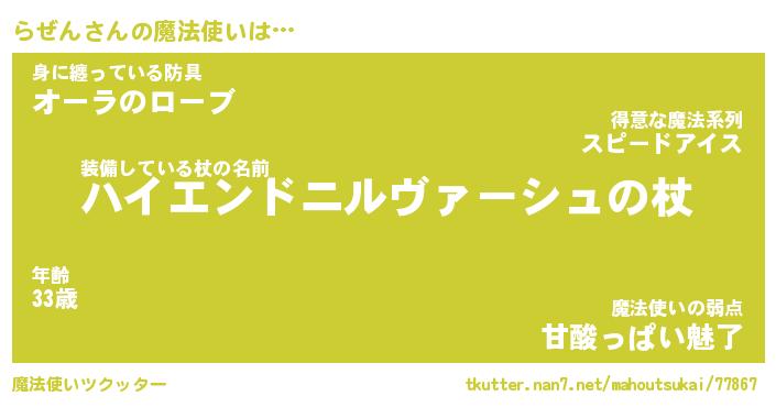 | ファンタジー風あだ名 | 『ラゼフェル』『エターナルラゼンー』 |