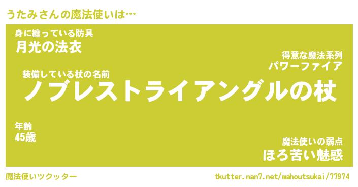 | ポケモン風あだ名 | 『ウタチュウ』『ウタミダネ』 |