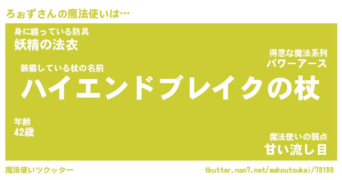 | ファンタジー風あだ名 | 『ロォフェル』『エターナルロォズー』 |
