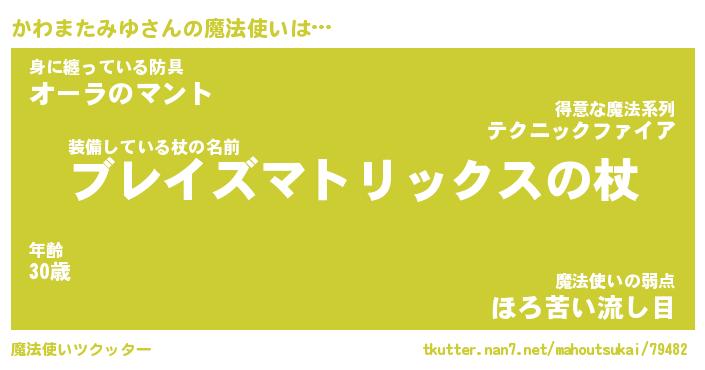 | ヒーロー風カッコイイあだ名 | 『スーパーカワマタミユ』『黄金騎士カワ』 |