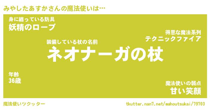 | ファンタジー風あだ名 | 『ミヤフェル』『ファントムミヤス』 |
