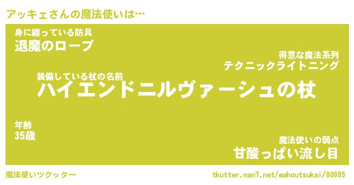 | ヒーロー風カッコイイあだ名 | 『スーパーアッキェ』『天弓騎士アッ』 |