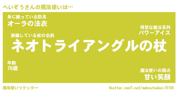 | 男性向けラノベタイトル風あだ名 | 『へいぞうの憂鬱』 |