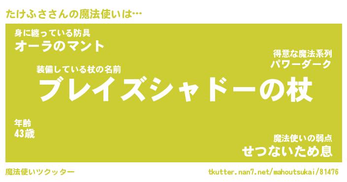 | ヒーロー風カッコイイあだ名 | 『スーパータケフサ』『幻影騎士タケ』 |