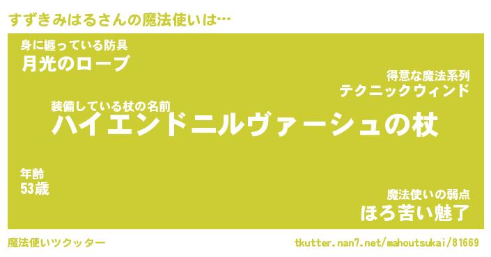 | ファンタジー風あだ名 | 『スズフェル』『ファントムスズス』 |