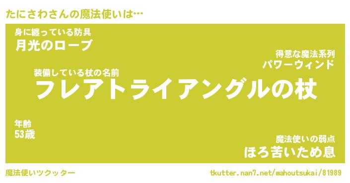 | ファンタジー風あだ名 | 『タニフェル』『エターナルタニサワー』 |