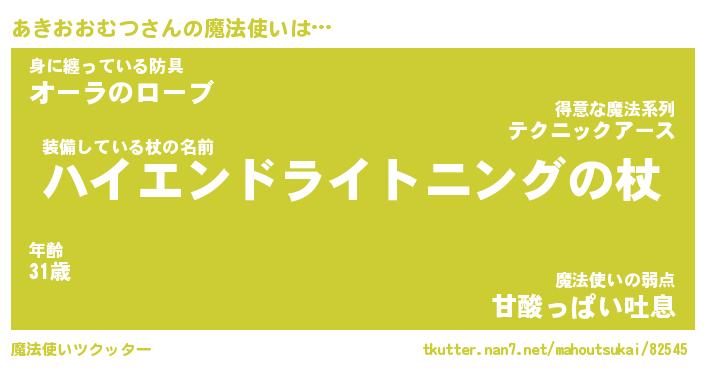 | 伝説のあだ名 | 『封印されし竜騎士あきおおむつ』 |