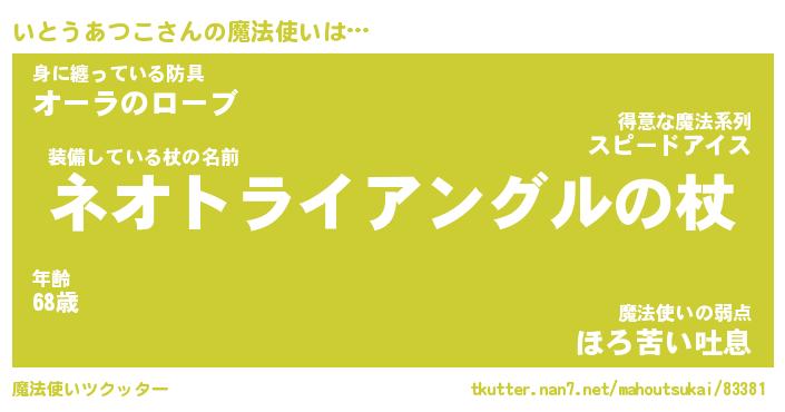 | 男性向けラノベタイトル風あだ名 | 『イトウアツコアートオンライン』 |