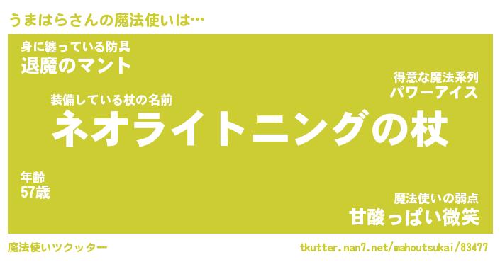 | ヒーロー風カッコイイあだ名 | 『スーパーウマハラ』『魔戒騎士ウマ』 |