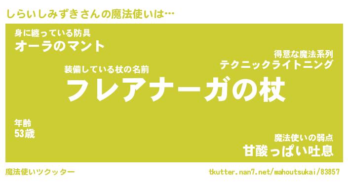 | 伝説のあだ名 | 『伝説のスナイパーしらいしみずき』 |