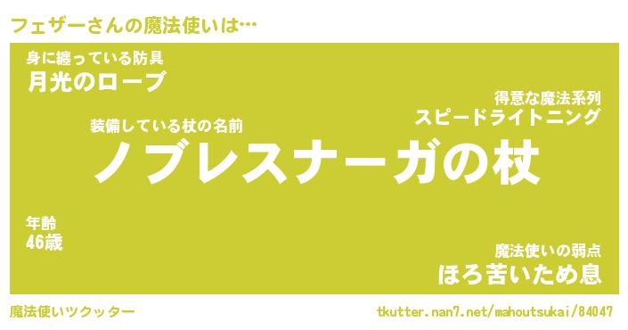 | ヒーロー風カッコイイあだ名 | 『スーパーフェザー』『暗黒騎士フェ』 |