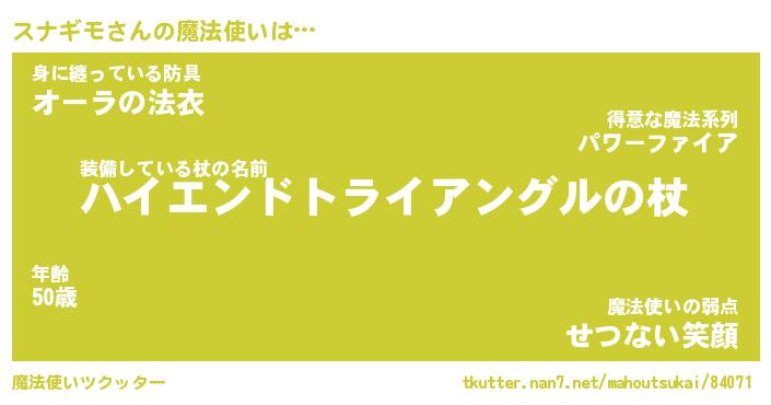 | ファンタジー風あだ名 | 『スナフェル』『エターナルスナギモー』 |