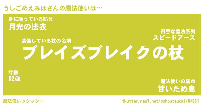 | 女子向けラノベタイトル風あだ名 | 『(仮)うしごめえみはのやんごとなき事情』 |