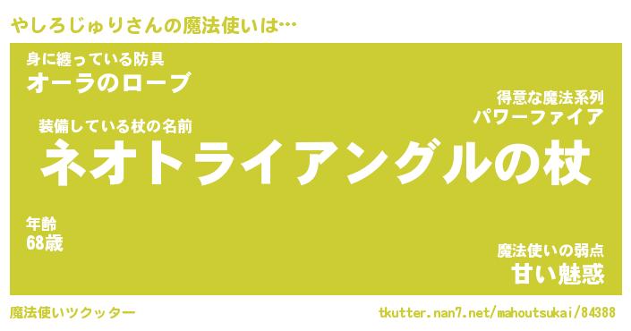 | ヒーロー風カッコイイあだ名 | 『スーパーヤシロジュリ』『黄金騎士ヤシ』 |