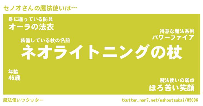 | ファンタジー風あだ名 | 『セノフェル』『エターナルセノオー』 |