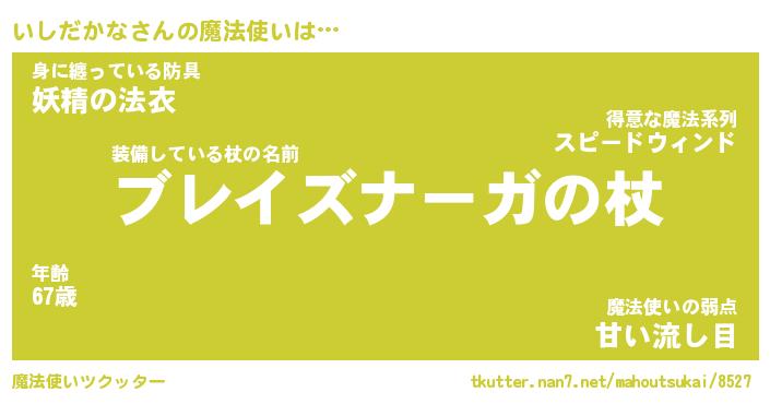| ヒーロー風カッコイイあだ名 | 『スーパーイシダカナ』『天弓騎士イシ』 |
