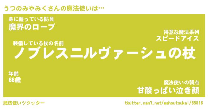 | 肩書あだ名 | 『うつのみやみく御曹司』 |