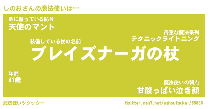 | 伝説のあだ名 | 『不死鳥のスナイパーしのお』 |