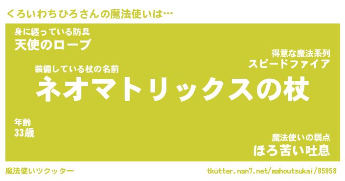 | 伝説のあだ名 | 『不死鳥の竜騎士くろいわちひろ』 |