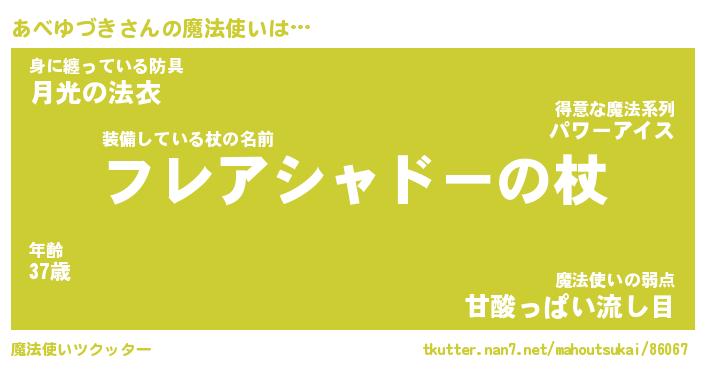 | 男性向けラノベタイトル風あだ名 | 『あべゆづきの憂鬱』 |