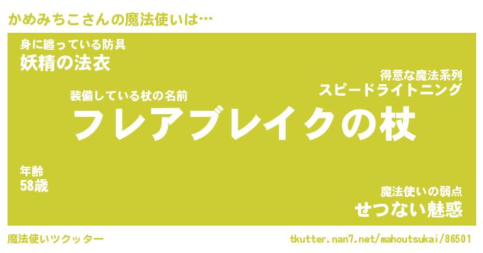 | ヒーロー風カッコイイあだ名 | 『スーパーカメミチコ』『魔戒騎士カメ』 |