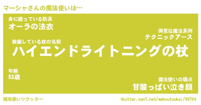 | ファンタジー風あだ名 | 『マーフェル』『エターナルマーシャー』 |