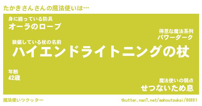 | ファンタジー風あだ名 | 『タカフェル』『エターナルタカキサンー』 |