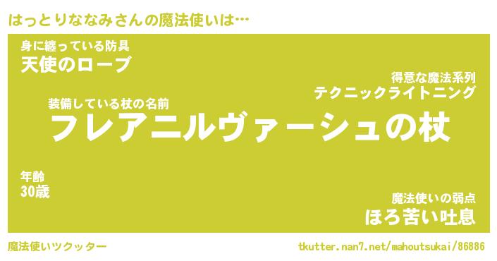 | 胡散臭い通販商品みたいなあだ名 | 『必ず成功する霊験あらたかなお札…その名も「はっとりななみ」』 |