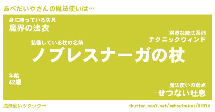 | 肩書あだ名 | 『あべだいや御曹司』『あべだいや大統領』 |
