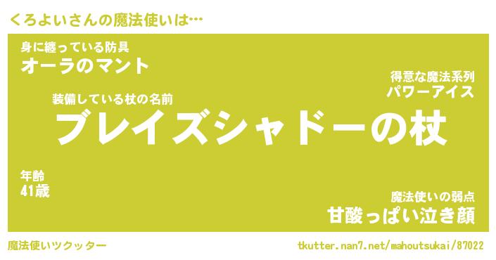 | 男性向けラノベタイトル風あだ名 | 『くろよいの憂鬱』 |
