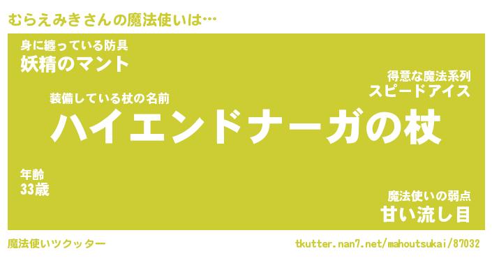 | 男性向けラノベタイトル風あだ名 | 『ムラエミキアートオンライン』 |