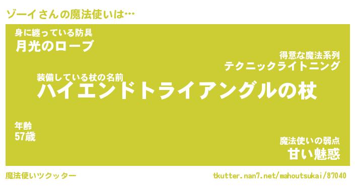| 男性向けラノベタイトル風あだ名 | 『ゾーイアートオンライン』 |