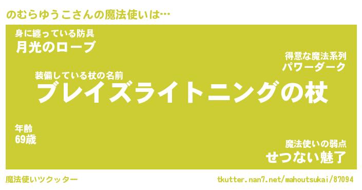 | 女子向けラノベタイトル風あだ名 | 『(仮)のむらゆうこのやんごとなき事情』 |
