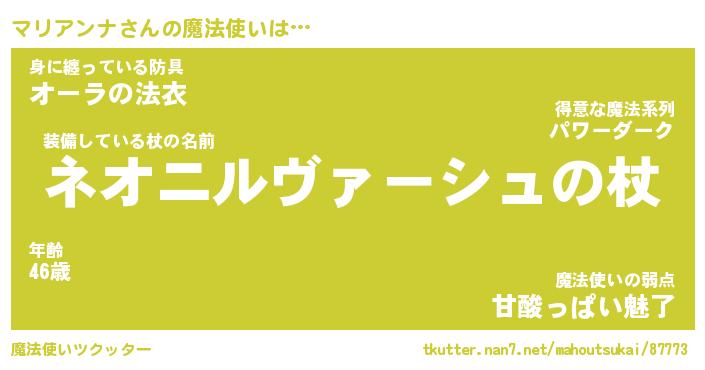 | ヒーロー風カッコイイあだ名 | 『スーパーマリアンナ』『幻影騎士マリ』 |