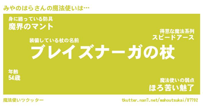 | ファンタジー風あだ名 | 『ミヤフェル』『エターナルミヤノハラー』 |