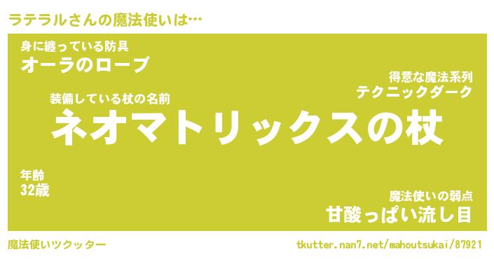 | ファンタジー風あだ名 | 『ラテフェル』『エターナルラテラルー』 |
